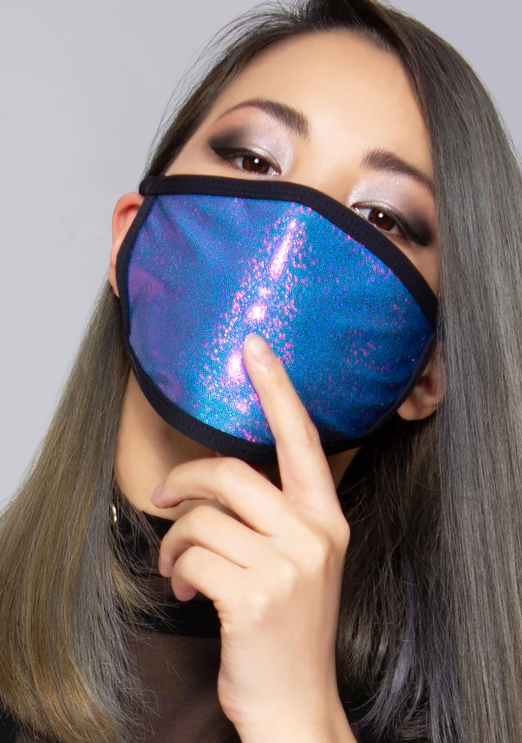 Enter a new dimension when rolling in the Forbidden Grape Dust Mask from BGlittz. This ultra rave ready dust mask features a full-on holographic purple on super soft, breathable, stretchy nylon fabric. Now, welcome to my world.