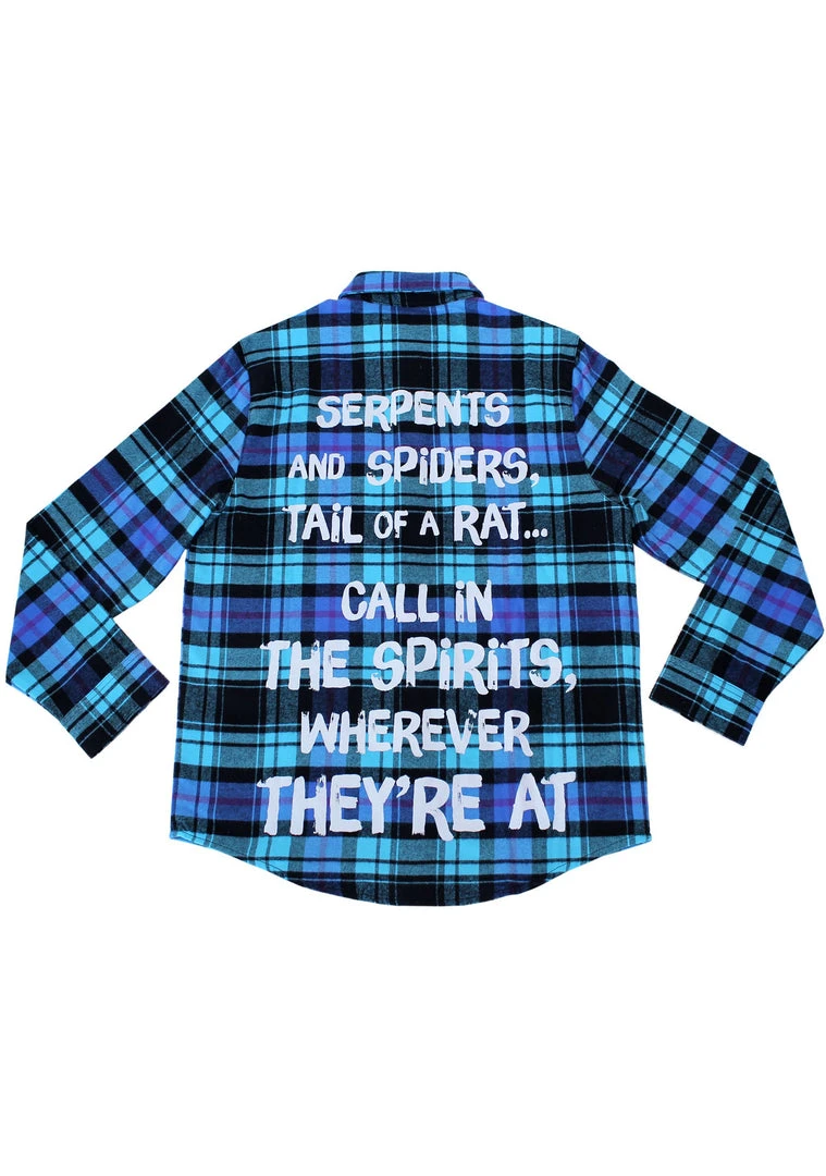 Goblins and ghoulies from last Halloween, awaken the spirits with the Disney Haunted Mansion Madame Leota Flannel from Cakeworthy. This fantastically nightmarish festival top features a soft long sleeve flannel with a back print, button-up front, front pocket, and embroidered details. Dear sweet Leota, beloved by all. She may be in regions beyond now, but with this cute top, she’s having a ball.