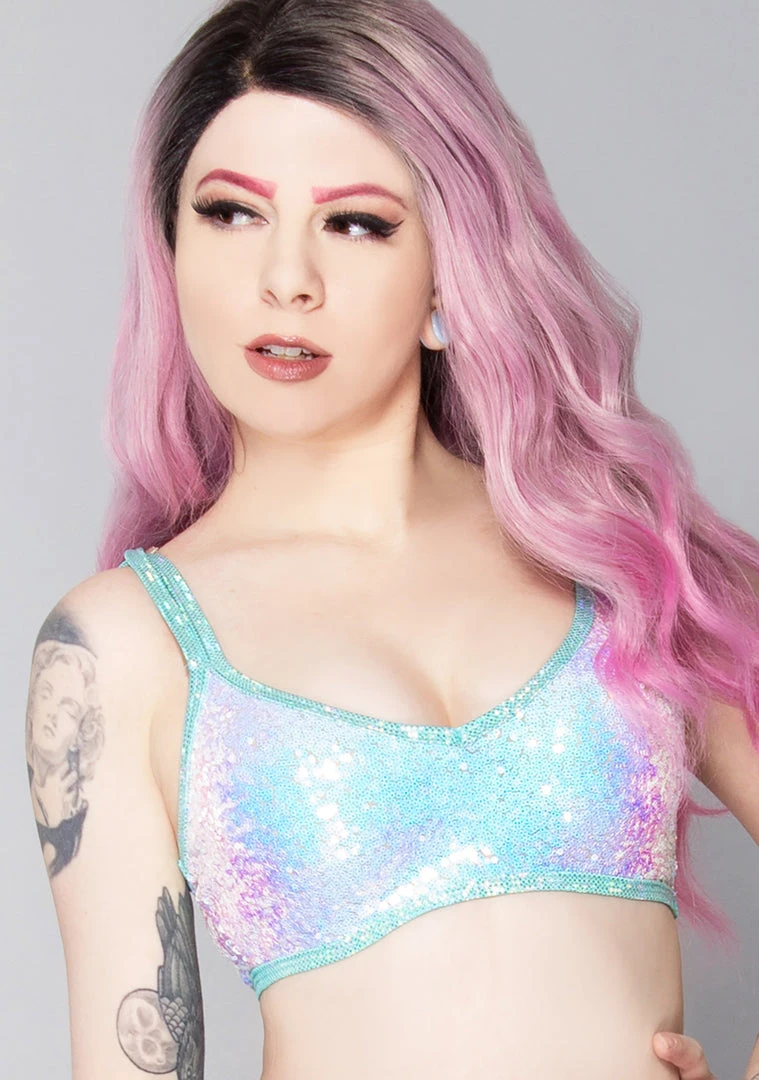 - Cosmic Ice Double Strap Sequin Crop Top