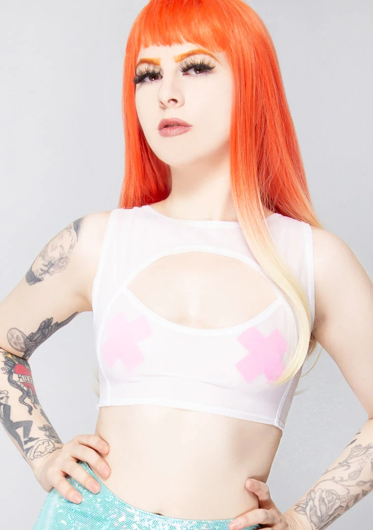Purify their souls by raving in the J Valentine Pure Dreams Mesh Keyhole Top. This sleeveless festival top features a dreamy sheer mesh design, crop fit and sexy keyhole front detail. Glow with confidence.