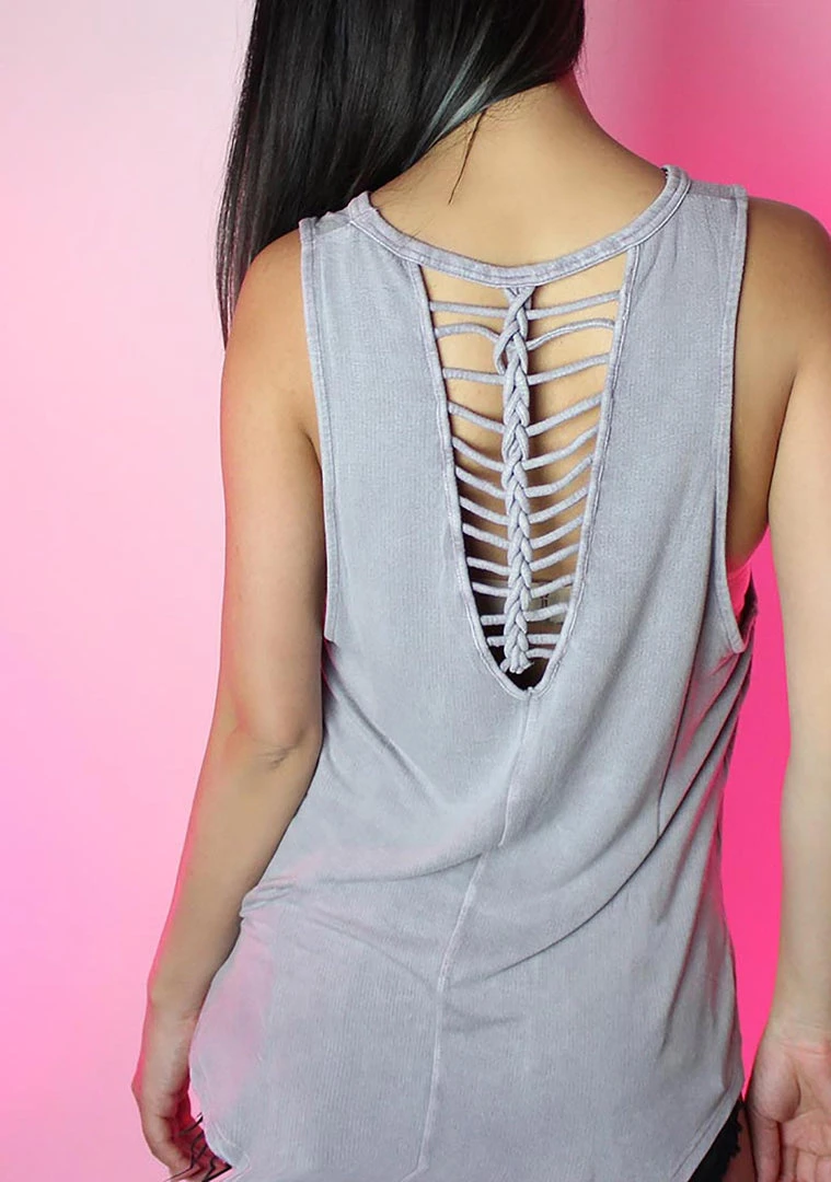 Expect the unexpected when you wear the Plot Twist Top ’cause life comes at you fast, girl. This super cute festival tops comes in a soft rayon/spandex blend in a cool lavender color with braided strap detail in back. Throw on this top for any occasion and get ready to have a good time.