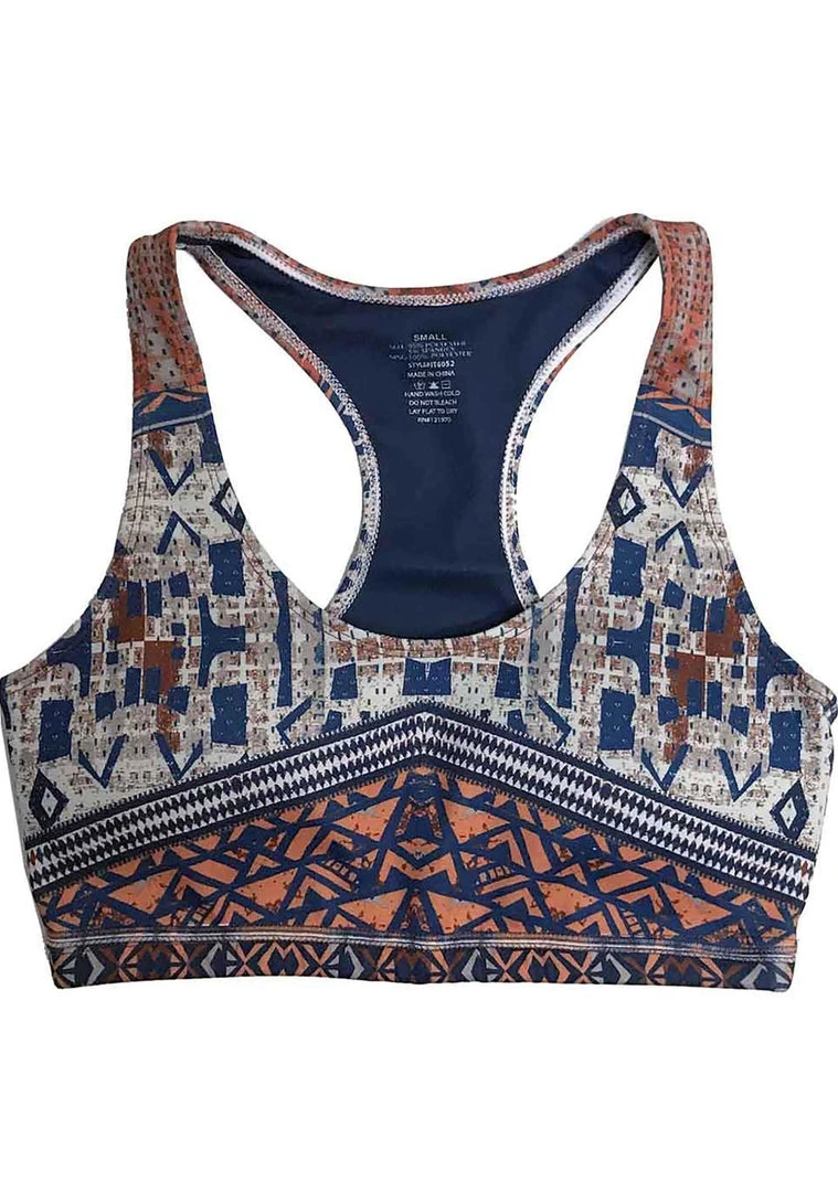 Dance from day to night with these move free Aztec Sports Bra top. These super stretchy festival tops features a full-on Aztec inspired print on super stretchy polyester base, built in bra paddings, strong elastic at bust, and open razor back detail. Complete your raver look with by pairing this top with our Scuba Print Shorts.