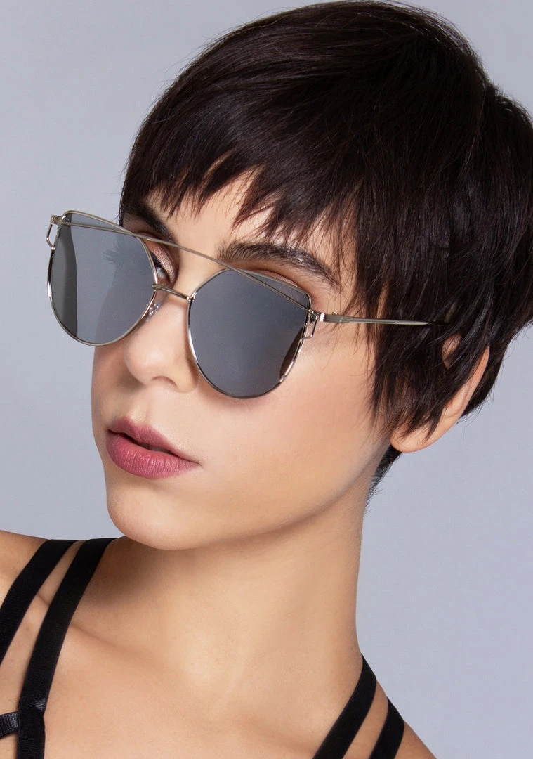You’re up to no good in the LASR Scandalous Reflective Sunglasses. These sexy blogger style sunnies feature an ultra-thin lightweight cat-eye metal frame with unique dual bridge detailing, comfy nose pads, and colored mirrored flat lens. You’re in it for the drama with these seductive shades.