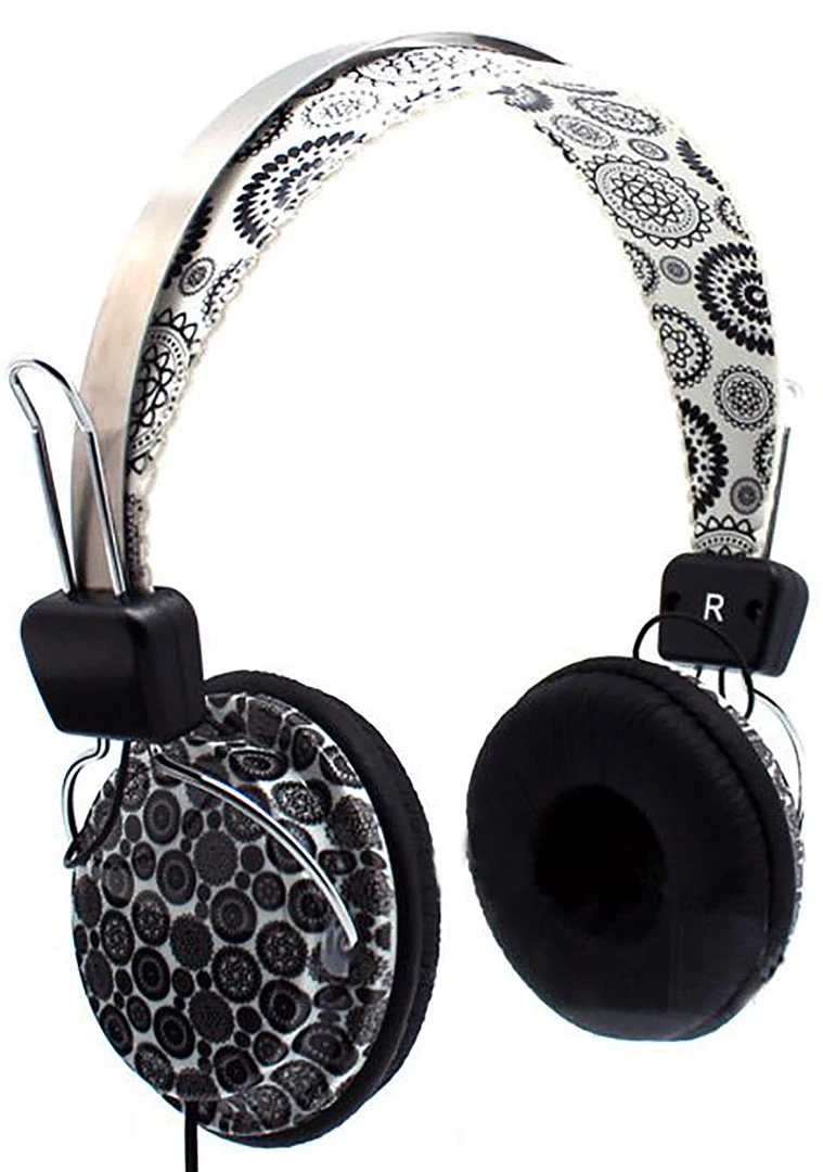 Bring music everywhere you go and show off the unique Paisley design with these lovely Black Paisley Stereo Headphones.