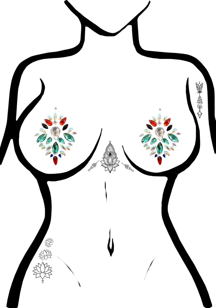 Be bold and beautiful when you wear the Vega Jeweled Nipple Pasties from Leg Avenue. These can be worn as or with any festival tops and are made with waterproof adhesive that are sure to stay in place until you take them off.