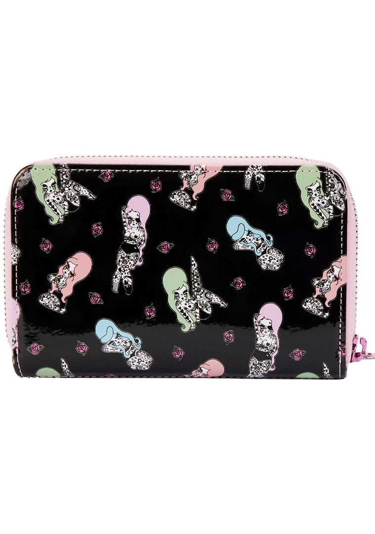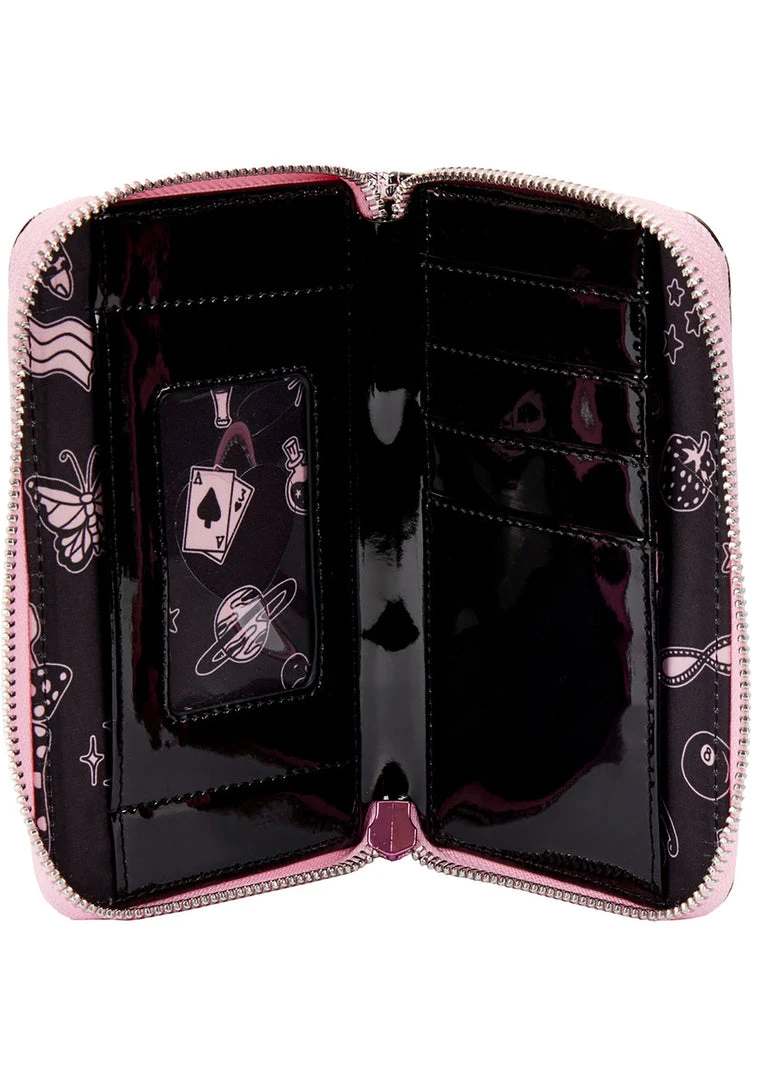 Be sweetness with edges as sharp as a knife while wearing the Valfré Bad Bettie Tattoo Heart Ziparound Wallet from Loungefly. These bombshell cute wallets feature a vegan leather outer with printed details, plenty of card, and ID slots, a coin pouch, and a zipper closure. Go on make ’em drool.