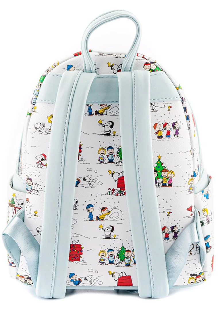 Spread holiday cheer with your favorite gang in the Loungefly X Peanuts Happy Holidays AOP Mini Backpack! This joyously cute festival backpack features printed details, zipper closure front pocket, top handle, zip-top closure, and adjustable straps. This is what Christmas is all about, Charlie Brown!