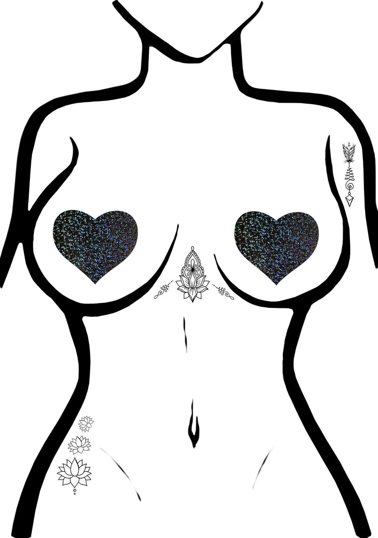 Cover up or bare it all when you wear the a pair of super cute Love Glitter Heart Nipple Pasties Covers by Pastease. These can be worn as or with any festival tops, and are made with latex-free, medical-grade, waterproof adhesive that are sure to stay in place until you take them off. Just peel off the backing, apply to clean & dry skin and get ready to dance your tits off, but not your pasties!