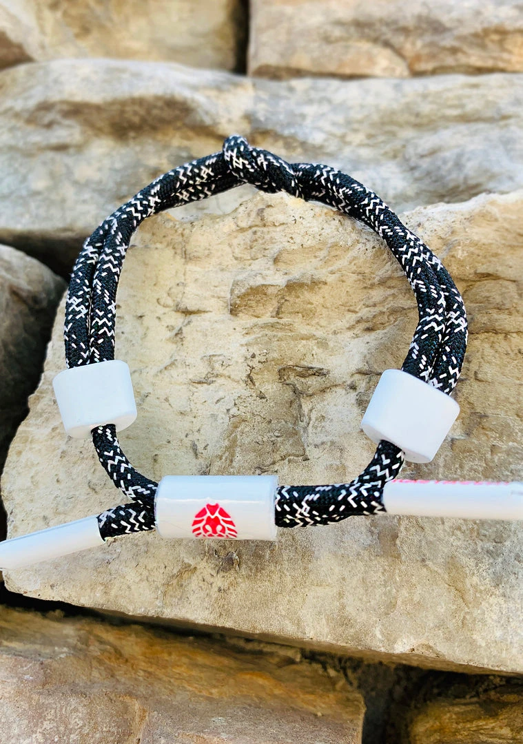 We’re scouring the internet and no other music festival bracelets hold a flame to this Rastaclat Tropical Glitch Dark Net Miniknot in Black/White. This adjustable mini festival bracelet features a versatile black cord design with baby pink, baby blue, and pastel-colored striped threaded accents. Featuring white rubberized hardware and red signature Rastaclat logo emblems, this Rastaclat knot bracelet is midnight rave, dark web and summer festival adventure approved.