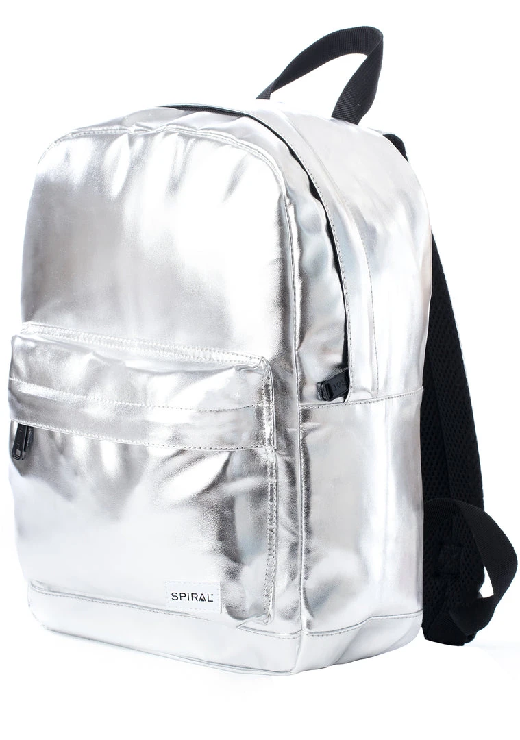 Take all the shine in the Steel Eclipse Festival Backpack in Metallic Silver by Spiral UK. Give futuristic vibes and stay ahead of the game in this sick metallic backpack made of hardwearing premium fabric, reinforced, adjustable back straps, additional back padding, and a spacious front pocket. Media port, grab handle, custom spiral labeling included. 18L capacity with hidden zip pouch and inner laptop/book divider. Light the way ‘cuz you’re out of this world.